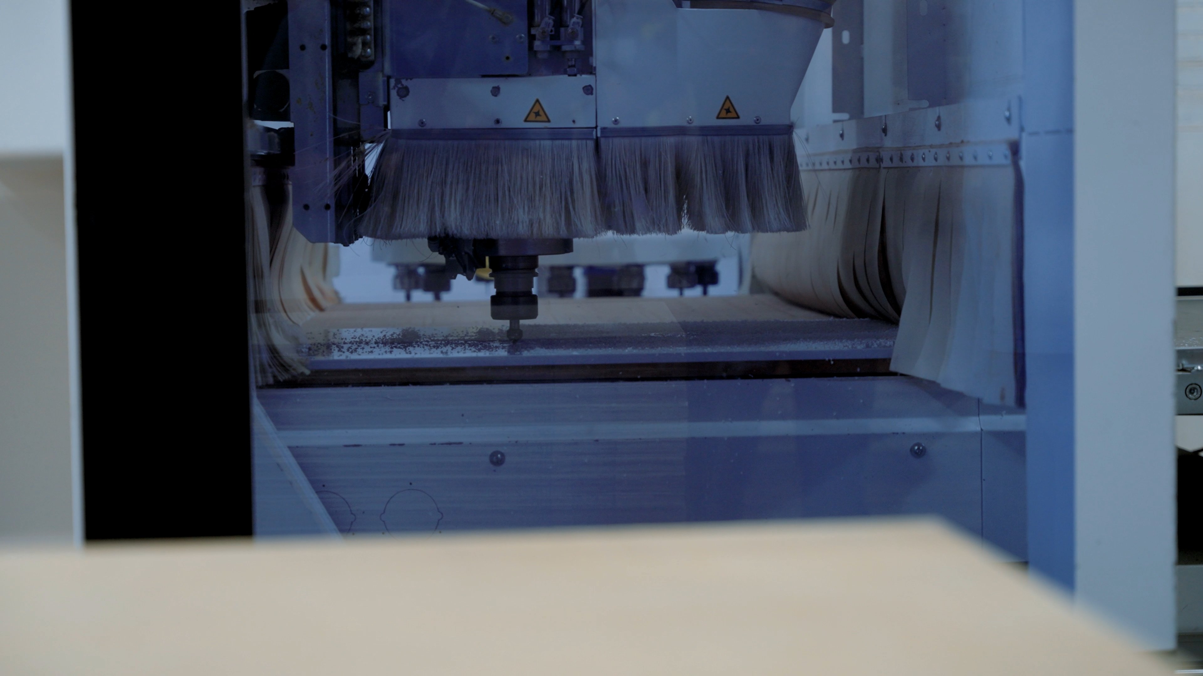 This high-performance precision saw that allows R.B. Woodcraft to cater to virtually any request, automatically connecting to engineering software. The twin table design allows for continuous machining even when removing cut parts, giving us the speed and accuracy to service any custom job.